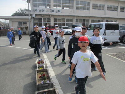 教室へ もどる 笑顔の 列