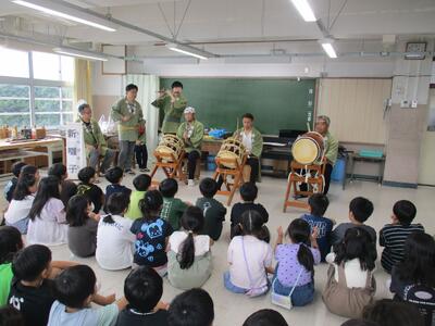 代表児童の演奏を みんなで 聞き入って