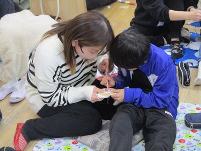 親子で ひとつ 投稿: HP担当 (12:00) カテゴリー: 今日の出来事 4年生 親子レク オリジナルのオーナメントを… スライドを見て つくりかたを 確認 開始 ふたりで 協力して… 細かなところまで ていねいに 刺繍に 織り込みたい 思いは… サポートを生かして 一人で… 2分の1成人式の 思い出に すてきな オーナメント 早く 飾りたい また ひとつ ステキな 時間 感染予防対策を講じながら 準備いただいた 学年部役員の皆様に 感謝。 Tweet -
