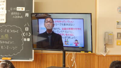 まってましたぁ ブログ 今日の出来事 01/08 パブリック HP担当 冬休みをふりかえる会 @リモート集会 生活委員の皆さんによる進行で… 校長先生のお話 朝のおだやかな 時間に… お話に 集中して… お正月…お雑煮のルーツから… 多様な 文化や 考え方って たくさん あるのですねぇ… 最後に 転入生を 御紹介。 スピーチが、上手。 進行してくれた 生活委員の皆さん 再開した 大小Days いろいろ 楽しみな 日々。