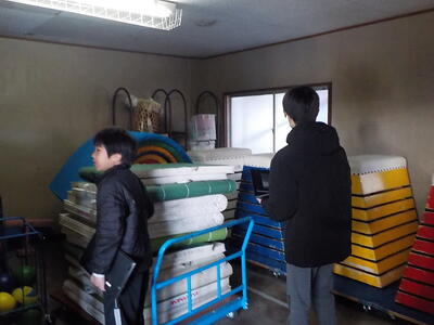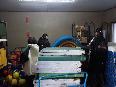 体育館の 器具室では…