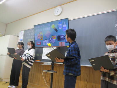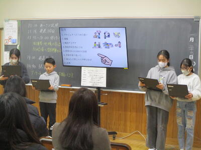 しろやま探究Day公開(5年) ブログ 今日の出来事 14:15 パブリック HP担当 5年生 総合的な学習「持続可能な町 新大田原市プロジェクト」 チーム班長からの オープニング 出番はもうすぐ!? ドキドキ… 落ち着いて スタート 伝えたいメッセージに 気持ちをのせて 分かりやすく 協力して 内容を 確認しながら… 環境からみた まちづくり 学び得たことに 聞いていただいた方からの 思いや気付きも 加えて 次の学びへ ふるさとを よくしていくのは わたしたち