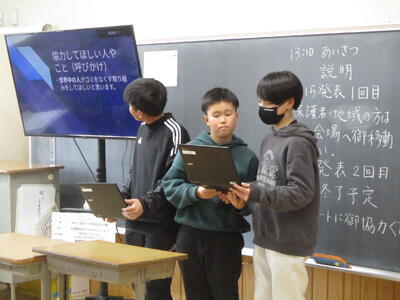 国語科で学んだ「ワザ」を… ブログ 今日の出来事 01/26 パブリック HP担当 3年生 国語科 クロームブックを使って イメージを広げて… 友達と 気付きを 共有しながら… できたよう 漢字をモチーフにした カルタづくり 早く みんなで 遊びたいねぇ。 明日の「しろやま探究Day」に向けて 分かりやすく 伝えるための 方法や 工夫を 友達と 確認 国語科の発表の工夫を… 明日の総合的な学習で 生かせる機会。 早く 明日に ならないかなぁ。