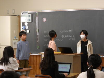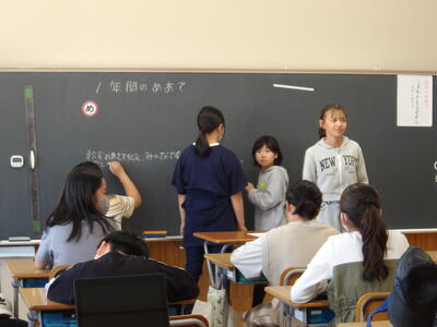 特色ある教育活動 小中一貫教育 中学校教員の乗り入れ授業実施について 本校では、確かな学力と体力の向上を目指した小中一貫教育の取り組みの一つとして、6年生の外国語科において、中学校の教員とのチームを組んだ学習指導をすすめています。 多様な指導者と触れ合うことで お知らせ 04/17 パブリック HP担当 特色ある教育活動 小中一貫教育 中学校教員の乗り入れ授業実施について 本校では、確かな学力と体力の向上を目指した小中一貫教育の取り組みの一つとして、6年生の算数科、外国語科、体育科において、中学校の教員とのチームを組んだ学習指導をすすめています。 毎週火曜日の5校時は6年生3クラスが合同での体育の授業を指導しています。3名の学級担任と若草中学校の複数の体育科教員でチームを組み、より丁寧に、専門的な指導・支援に当たります。 毎週水曜日は、算数科の授業で乗り入れ授業を実施しています。教科担任の本校の教諭と中学校の教諭でチームを組んで指導します。中学校教諭による、より専門的な指導に触れながら、算数の基礎固め・発展的な学びを実現します。 毎週木曜日の外国語科の授業で、本校教科担任の教諭と中学校の教諭による外国語の授業を進めています。 多くの指導者と触れ合うことで、英語へのより深い理解やコミュニケーションの充実を実現します。小・中学校が連携し、「質の高い教育」の実現に向けた取り組みを行っていきます。 今後とも、よろしくお願いいたします。 大田原小学校第5学年 菊作りについて 5年生は、「総合的な学習の時間」に、わたしたちの住む「大田原市の環境」について調べ、大田原市の環境をさらによりよいものにするために、さまざまな視点から学習を進めています。その中で、自然環境を守り育てていく活動の一貫として、学年全体で菊の栽培活動に取り組んでいます。 今年度も約10名の方々の御支援を受け、クラス毎に5月に挿し穂をした後、6月に1回、7月に2回、順調に育った苗の植え替えをしました。的確な御指導により、児童ひとりひとりがとても大切に苗を扱うと同時に、推進協議会の皆様と子供たちとの温かい心の交流が図れたと思います。 子供たちは当番を決め、毎日の天候を気にしながら、愛情をかけて水やりをしてきました。秋の気配が漂う頃になると、美しくドーム型に咲き揃ってきます。校内はもちろん菊花展に展示されますので、ぜひ子どもたちの育てた美しい花の数々をご覧ください。 大田原小学校第4学年 しろやまタイムの取組について 4年生の総合的な学習の時間(しろやまタイム)では、「わたしたちは、みんなにやさしい町をつくる『ハッピープランナー』」というめあてを掲げました。福祉活動を知り、福祉に関わる人や町と自分たちとを結びつけながら、生活を見つめていこうと取り組んでいます。 また、小中一貫教育として、SDGsのターゲットの中にある「3 すべての人に健康と福祉を」に関連させ、家庭、学校、地域でできる身近な取り組みを提案しています。やさしい町づくりのためのアイディアをみんなが共有し、実践できることが大切だと考えています。 ハッピープランナー達が手作り新聞などで楽しいプランを発信していけるよう、教科の枠を超えて1年間取り組んでいきたいと思います。今後、活動の様子を順次管理教室棟階段付近に掲示していく予定ですので、本校にお越しの際には、ぜひご覧ください。 大田原小学校第3学年 しろやまタイムの取組について 3年生の総合的な学習の時間(しろやまタイム)は、「大田原市の観光大使になろう。~大田原市のよいところを発信しよう~」というめあてで進めています。 大田原市の特産品である「唐辛子」を実際に栽培しながら、唐辛子の起源や種類・調理方法など、自分が関心をもったことを中心に情報を収集し、まとめていきます。 インターネットを利用した検索やキーボードへの文字入力の仕方など、初めて取り組むことが多い活動ですが、子どもたち同士で分からないところは教え合い、協同して問題を解決しています。 夏休みを利用して、大田原市の歴史ある建物や建造物・自然・特産品・名店などを対象に選び、本やインターネット検索を利用して調べたことや、実際に出向いて取材してきたことを発表しています。大田原市の観光大使になるために、調べてきた情報を学級で共有し、分類・整理することで、子どもたちが考えた「よいものガイドブック」が作れるよう、1年間取り組んでいきたいと思います。 今後、活動の様子を順次管理教室棟東階段付近に掲示していく予定ですので、本校にお越しの際には、ぜひご覧ください。 大田原小学校第2学年の様子について 2年生は表現力向上のため、語彙力を高める活動に取り組んでいます。毎週図書室でいろいろな分野の本に触れさせ、読書量を増やしたり、新聞記事を読んで内容を確かめたりすることで、たくさんの言葉に親しんでいます。 また、視写や授業の振り返りをするこ