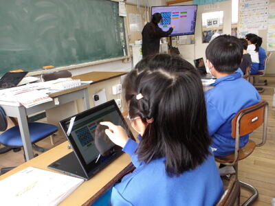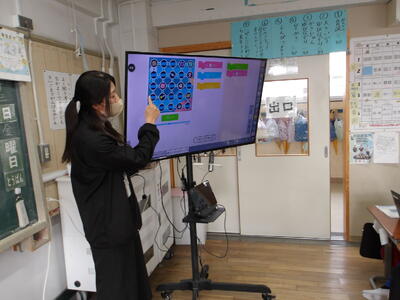 スタジオと 各教室を つないで 大小クイズ!